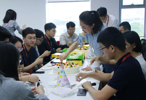 2019年5月31日,聯測杭州總部,報告廳彌漫著蛋糕的甜香和歡樂的氣氛,那是聯測公司5月份生日的小伙伴們在舉行今年的生日派對。